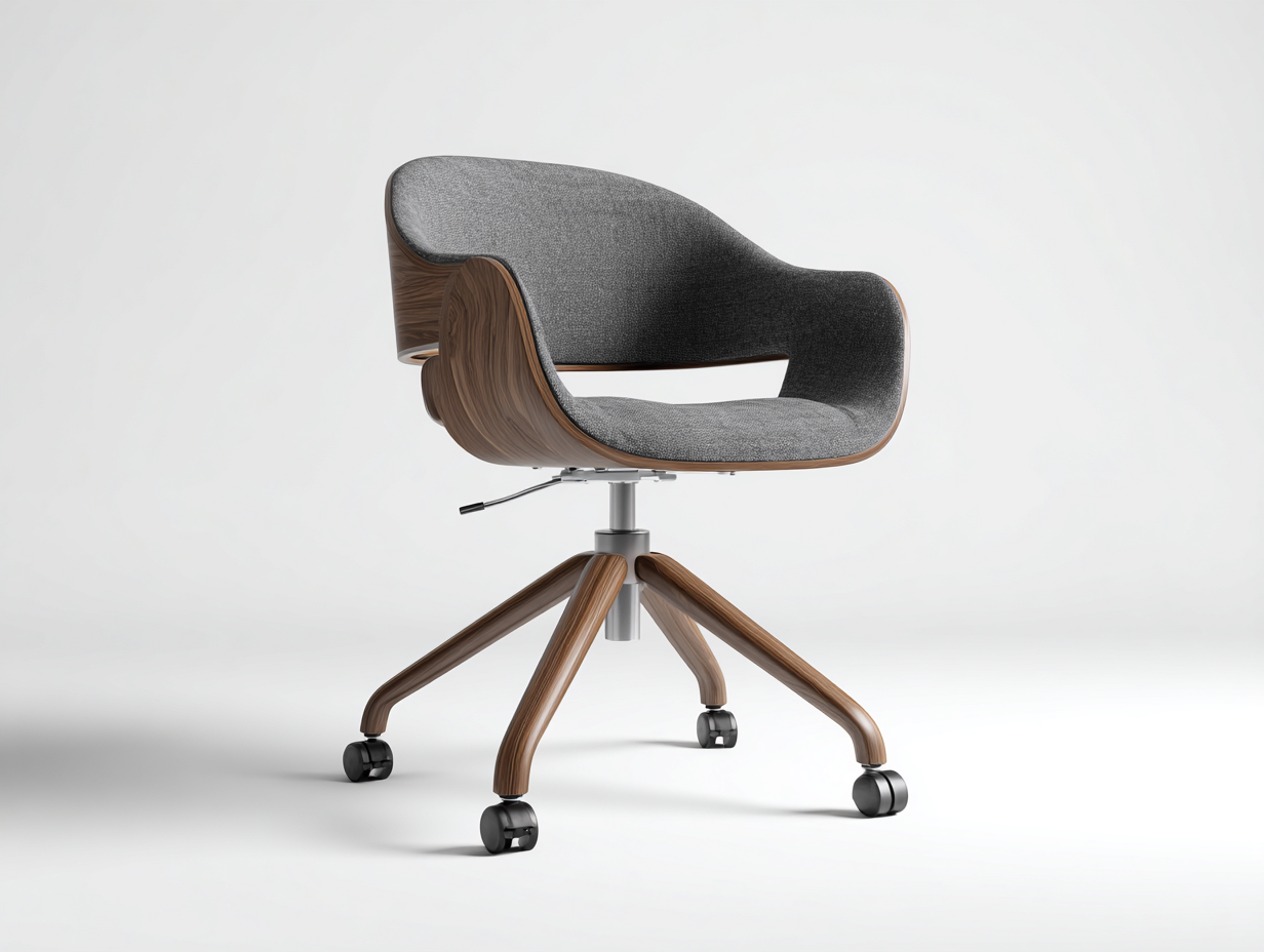 Esta silla de oficina presenta un diseño contemporáneo pensado para espacios de trabajo modernos. Su forma envolvente ofrece una experiencia de asiento cómoda durante las actividades diarias frente al escritorio. El acabado en color gris combinado con detalles de madera aporta una estética elegante que se integra fácilmente en oficinas profesionales, estudios o áreas de trabajo domésticas.